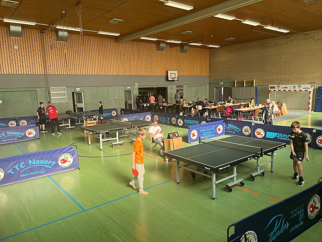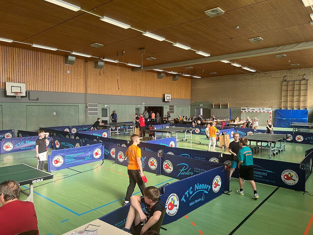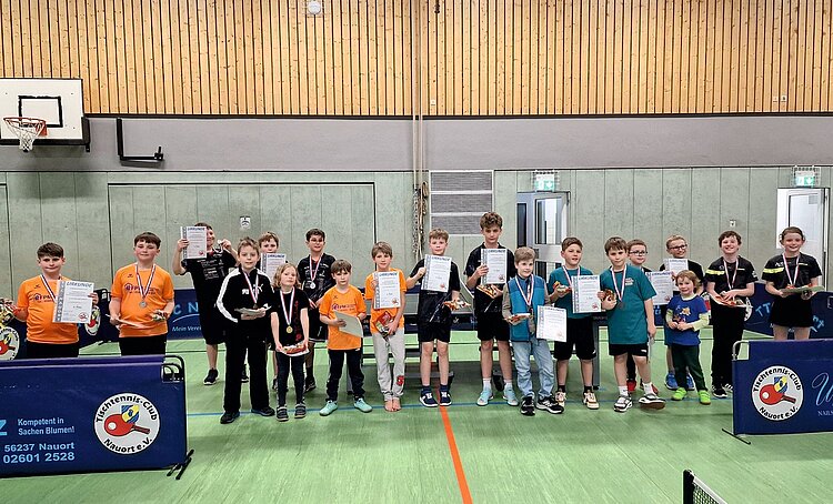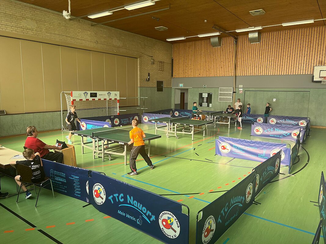 In zwei Vierer-Gruppen duellierten sich die jeweiligen Teams und es gab viele spannende Spiele zu sehen. Nach ca. 3,5 Stunden Spielzeit standen dann die Platzierungen fest. In Gruppe A belegte das Team aus Oberlahnstein den ersten Platz, Zweiter wurde das Team aus Bad Ems, den dritten Platz sicherte sich das Team aus Eschelbach und den vierten Platz belegte das Team des TTC Nauort.