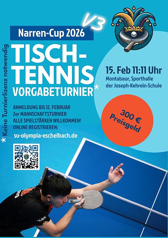 Nach dem großen Zuspruch und Erfolg in den beiden letzten Jahren lädt die Tischtennisabteilung des SV Olympia Eschelbach wieder zu einer Tischtennis-Veranstaltung der besonderen Art in die Sporthalle der Joseph-Kehrein-Schule nach Montabaur ein.
